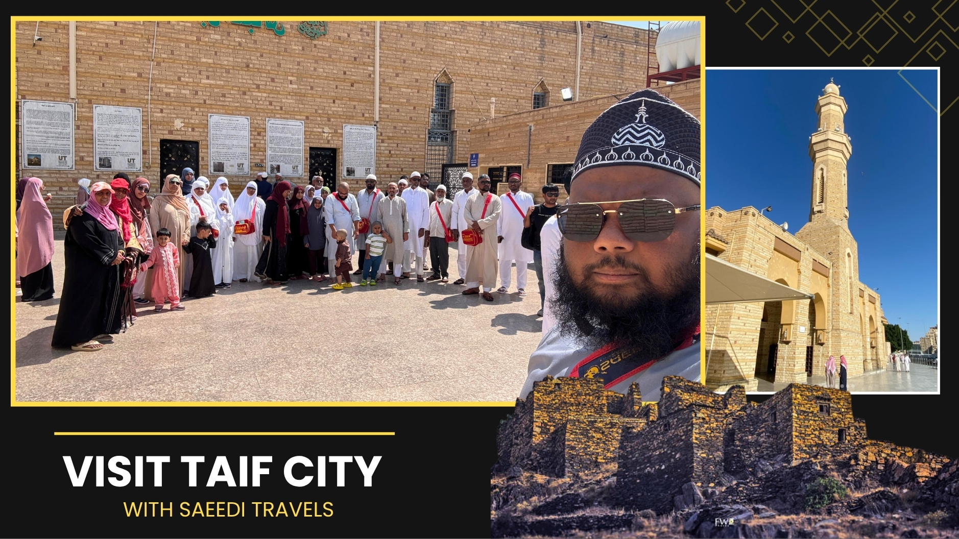 | ✅ Direct Flight (Saudia Airlines – HYD–JED–HYD) ✅ 4 Umrah (Arrival | Ji’ranah | Hudaibiya | Taif) ✅ Ziyarat in Makkah, Madinah, Taif, Badar, Kiswa Factory & More 🏨 Premium 5⭐ Accommodation – Near Haram 🍱 3 Times Delicious Meals with many varieties 🧳 Cabin Bag | Shoulder Bag | 5L Zamzam 📚 Complimentary Umrah Guide Book 🎁 Special Gifts: Ihram for men, Tasbeeh & Miswak, and gifts for ladies & kids 👑 Full Supervision by Company Owner |